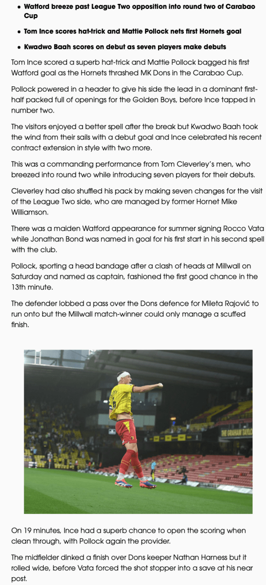 Watford Observer: RECAP: Watford 5 MK Dons 0