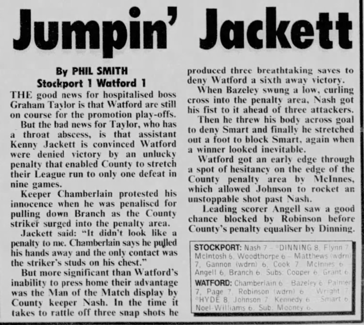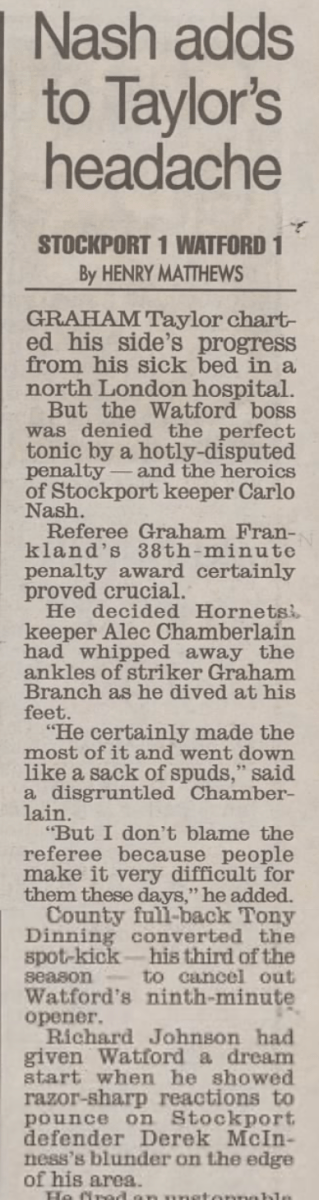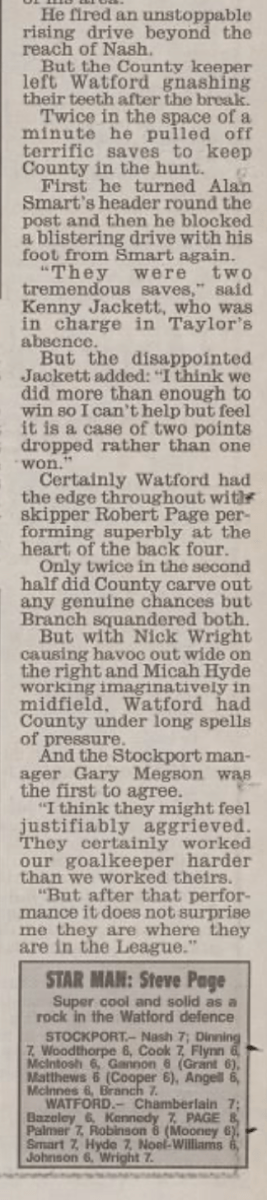 14th November 1998- New Division One, Stockport County 1 Watford 1 https://www.watfordfcarchive.co.uk/fixture/1998-11-14 Sunday Mirror, 15 Nov 1998 Sunday People, 15 Nov 1998 Share this: Share on X (Opens in new window) X Share on Facebook (Opens in new window) Facebook