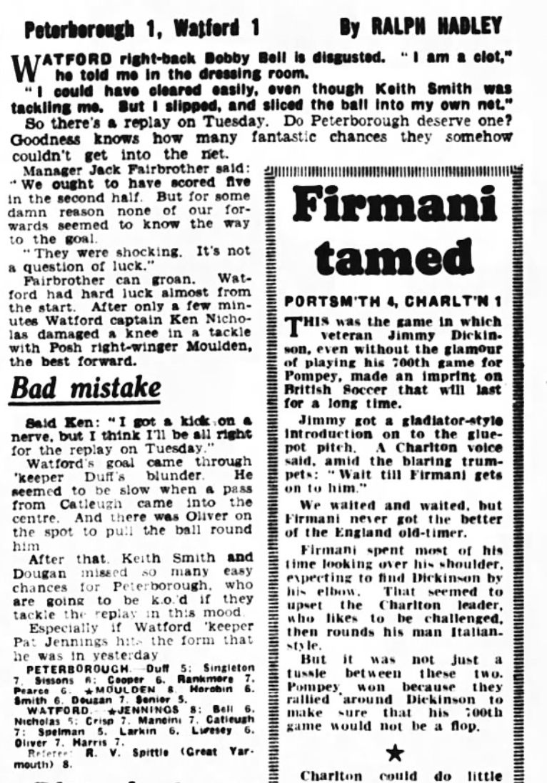 For the second week running industrial strike action meant the size of the paper was significantly reduced and once again there were no match reports of Watford games.