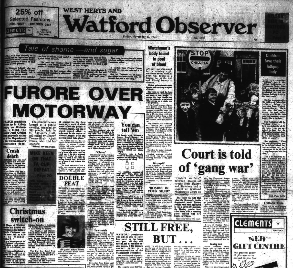 29th November 1974- Watford Observer Share this: Share on X (Opens in new window) X Share on Facebook (Opens in new window) Facebook