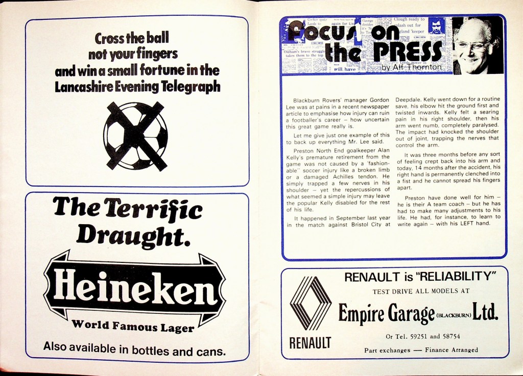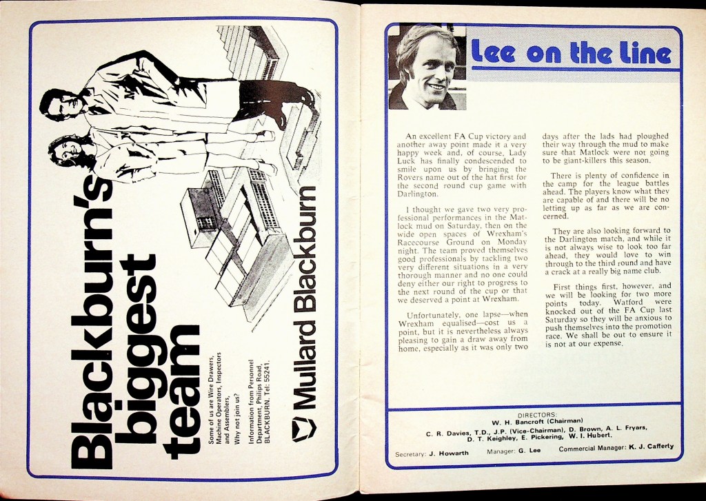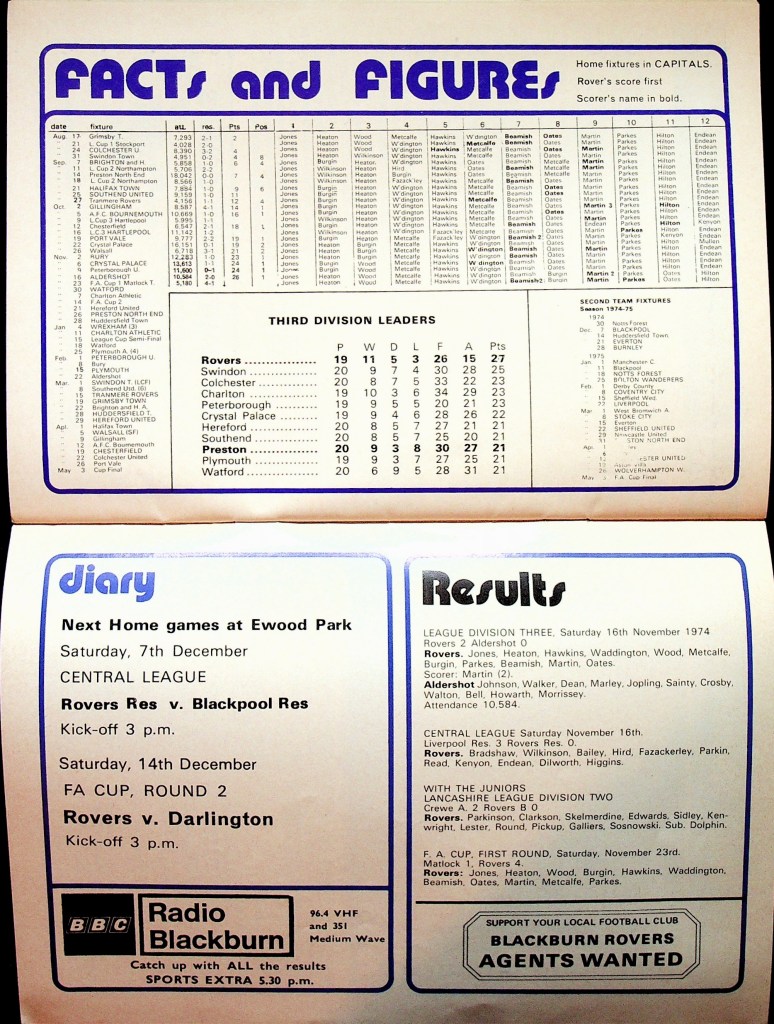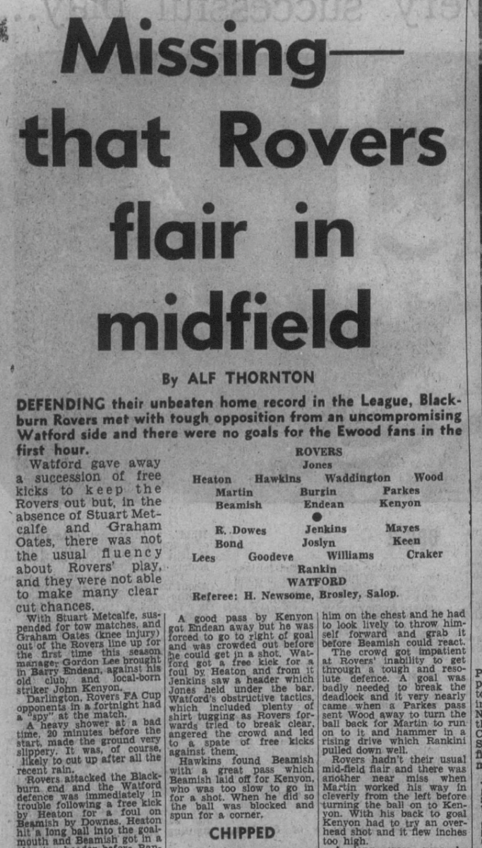 30th November 1974- Division Three, Blackburn Rovers 0 Watford 0 Leave a Reply http://watford.fcdb.info?s=40850&id=3051 Lancashire `Telegraph, 30 Nov 1974 Sunday People, 1 Dec 1974 Watford Observer match report Share this: Share on X (Opens in new window) X Share on Facebook (Opens in new window) Facebook