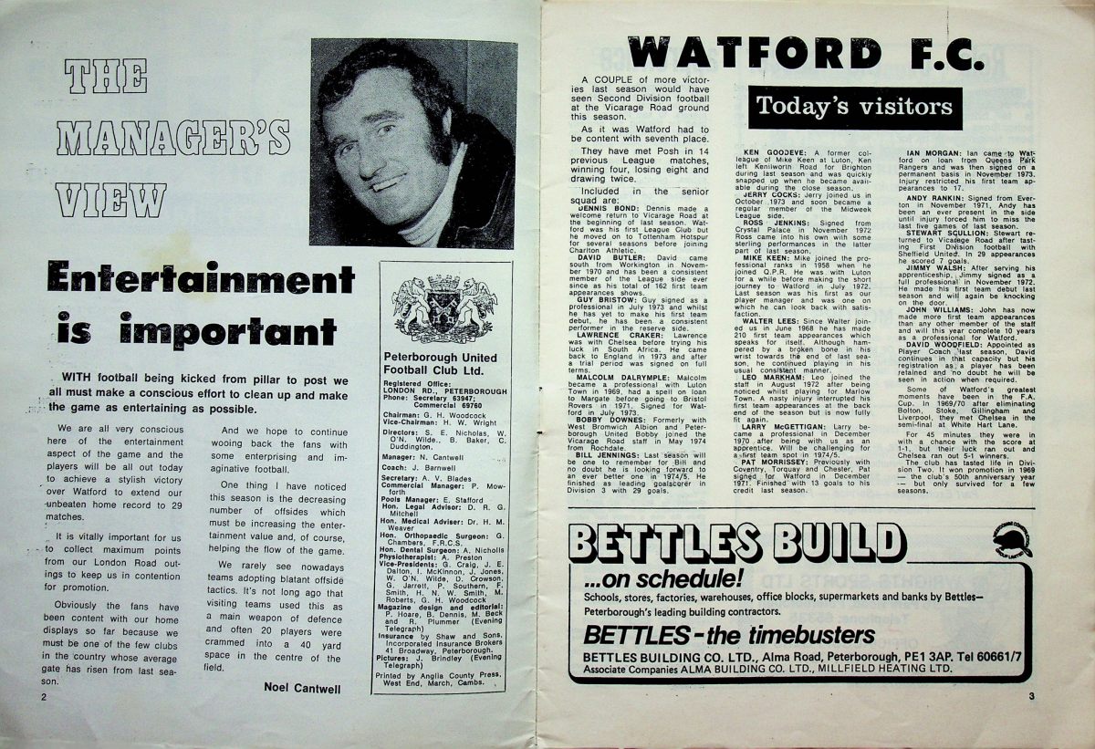 12th October 1974- Division Three, Peterborough United 1 Watford 0 Programme images courtesy of Matt Hall https://watford.fcdb.info/index.php?page=matches Sunday People, 13 Oct 1974 Watford Observer match report https://www.soccerbase.com/matches/results.sd?date=1974-10-12 https://www.11v11.com/league-tables/league-division-three/12-october-1974/ Share this: Share on X (Opens in new window) X Share on Facebook (Opens in new window) Facebook