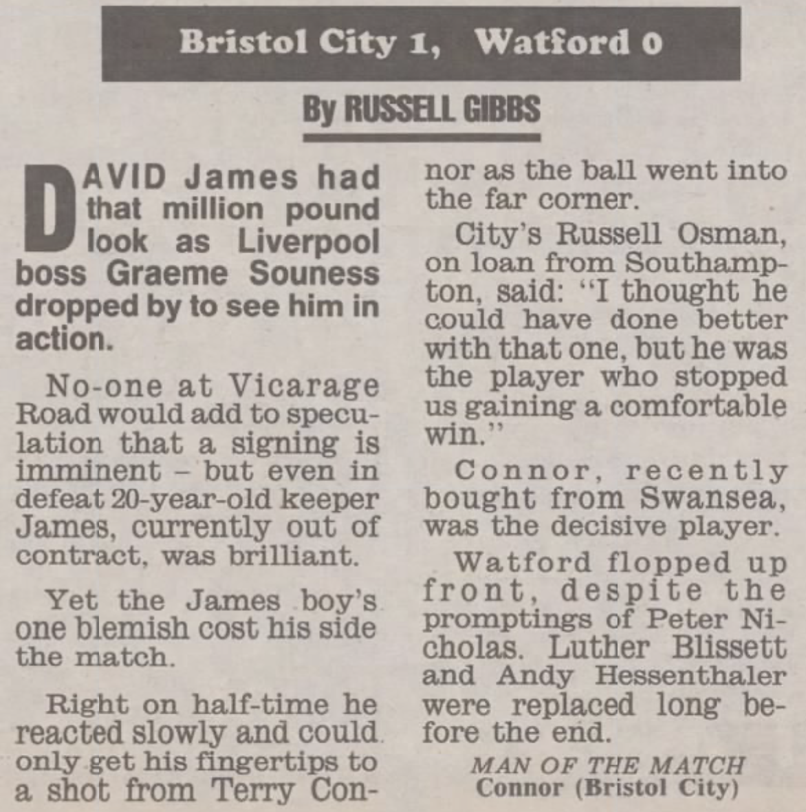 12th October 1991- Division Two, Bristol City 1 Watford 0 https://watford.fcdb.info/index.php?page=matches Programme images courtesy of Matt Hall Sunday Mirror, 13 Oct 1991 Sunday People, 13 Oct 1991 Sunday People, 13 Oct 1991 Share this: Share on X (Opens in new window) X Share on Facebook (Opens in new window) Facebook