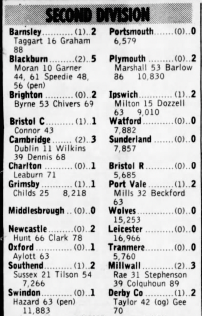 12th October 1985- Division One, Watford 3 Manchester City 2 Leave a Reply http://watford.fcdb.info?s=31206&id=3623 Sunday People, 13 Oct 1985 Sunday Telegraph, 13 Oct 1985 Daily Telegraph, 14 Oct 1985 Share this: Share on X (Opens in new window) X Share on Facebook (Opens in new window) Facebook