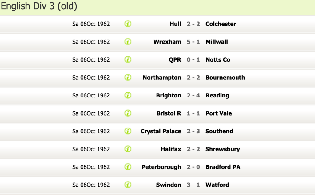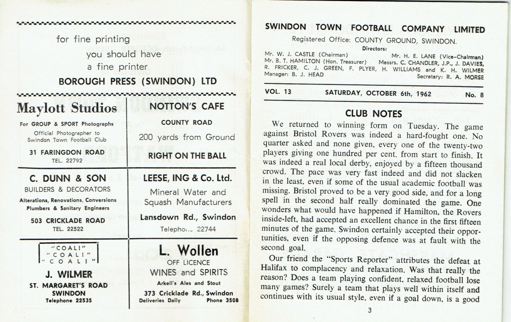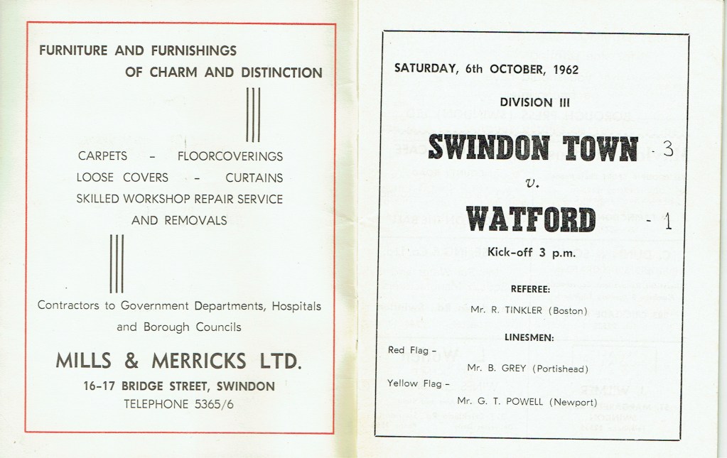 6th October 1962- Division Three, Swindon Town 3 Watford 1 Leave a Reply http://watford.fcdb.info?id=2442 Sunday People, 7 Oct 1962 Watford Observer match report Share this: Share on X (Opens in new window) X Share on Facebook (Opens in new window) Facebook
