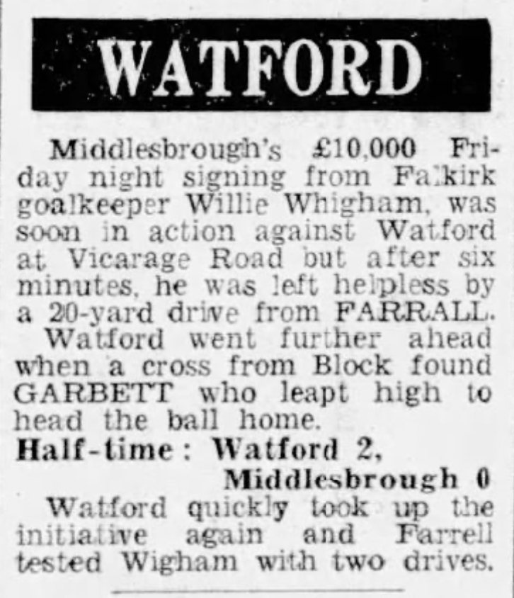 8th October 1966-Division Three, Watford 2 Middlesbrough 0 Leave a Reply http://watford.fcdb.info?id=2638 Evening Standard, 8 oct 1966 Sunday Mirror, 9 Oct 2966 Sunday People, 9 Oct 1966 Watford Observer match report Share this: Share on X (Opens in new window) X Share on Facebook (Opens in new window) Facebook