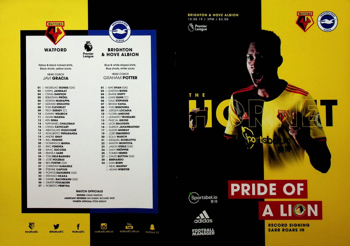 Watford beaten comfortably by Brighton and Hove Albion on the opening day of the 2019/20 season