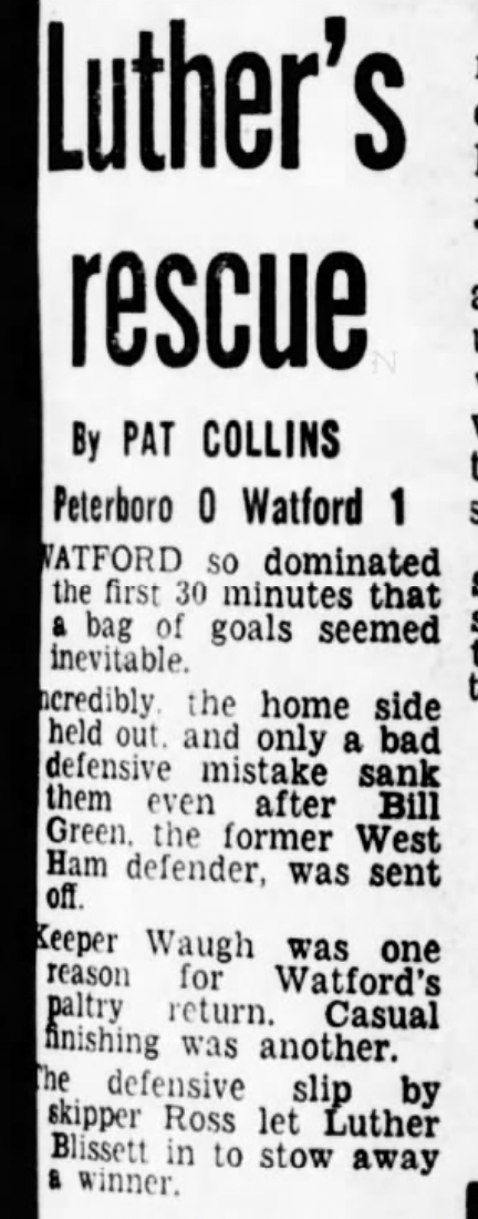 26th August 1978-Division Three, Watford 1 Peterborough United 2 Leave a Reply http://watford.fcdb.info?id=3238 Watford Observer match report Sunday Mirror, 27 Aug 1978 Sunday People 27 Aug 1978 Share this: Share on X (Opens in new window) X Share on Facebook (Opens in new window) Facebook
