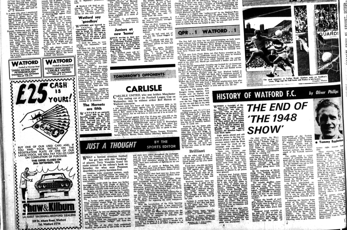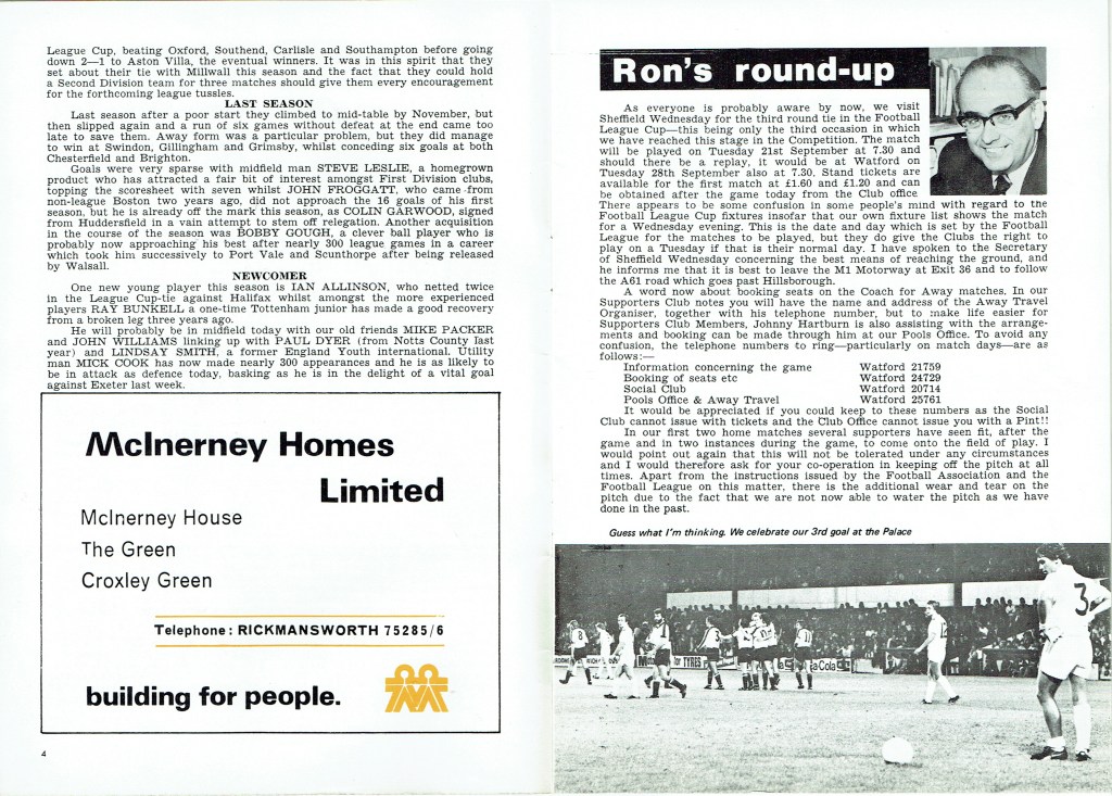Taken from the programme on 10th April 1999- New Division One, Watford 2 Bolton Wanderers 0