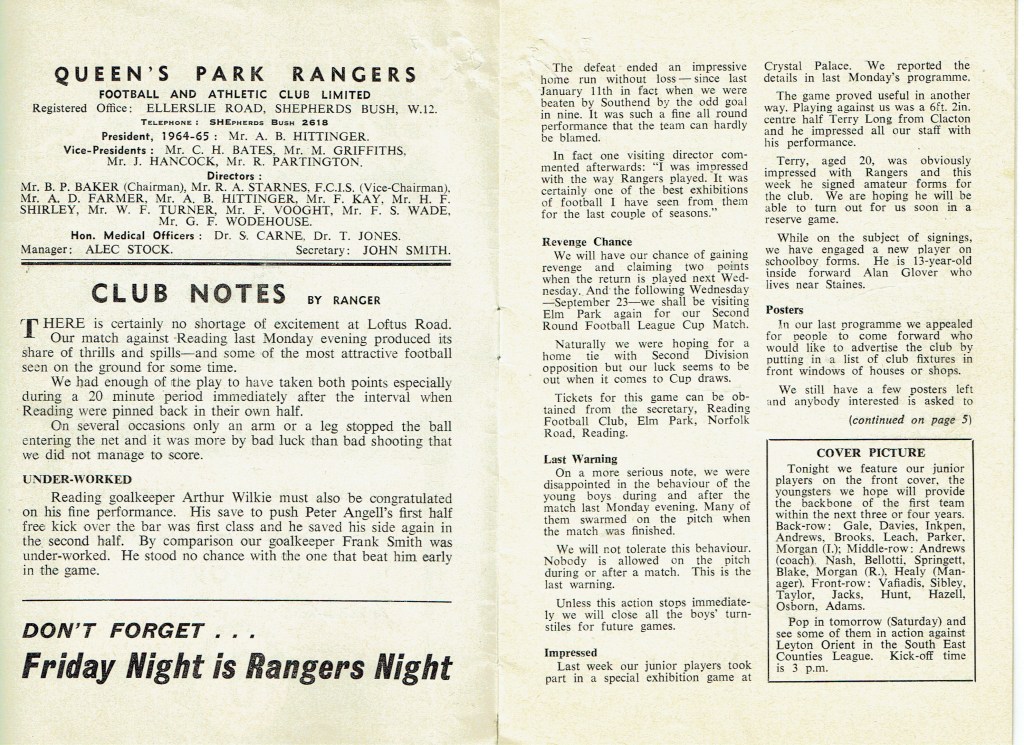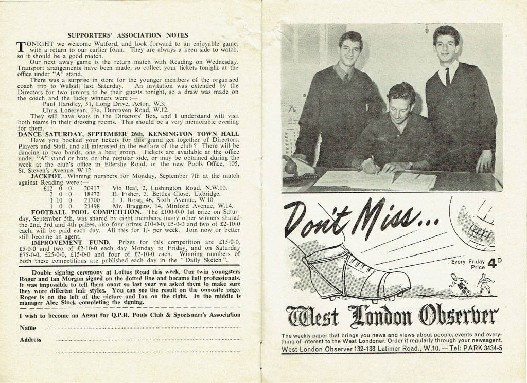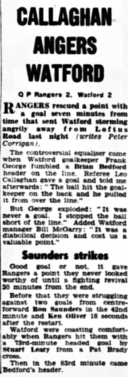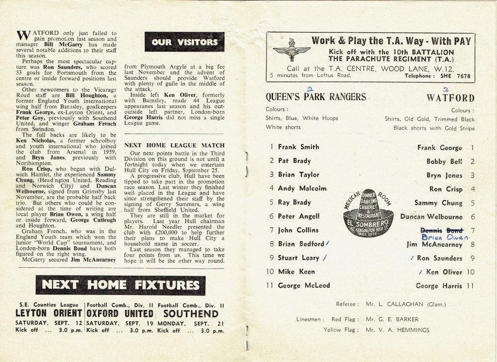 11th September 1964- Division Three, Queens Park Rangers 2 Watford 2 Leave a Reply http://watford.fcdb.info?id=2534 Daily Herald, 12 Sep 1964 Watford Observer match report Share this: Share on X (Opens in new window) X Share on Facebook (Opens in new window) Facebook