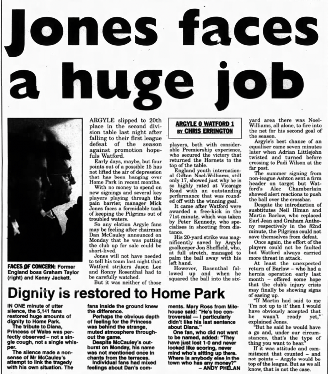This was the first game we played following the death of Diana, Princess of Wales.