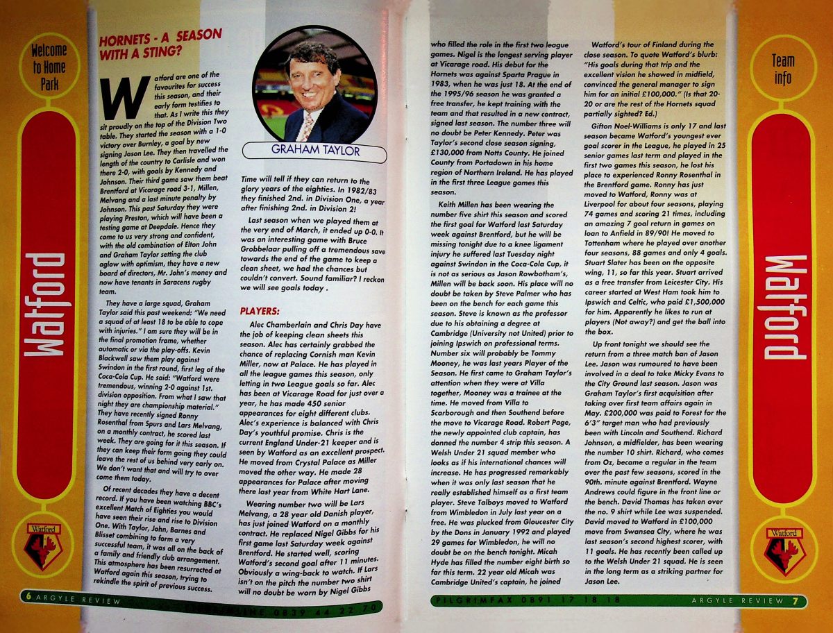 Taken from the programme on 19th September 2009- Championship, Watford 3 Leicester City 3