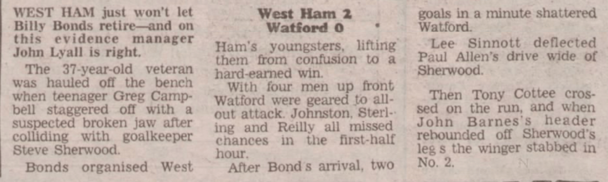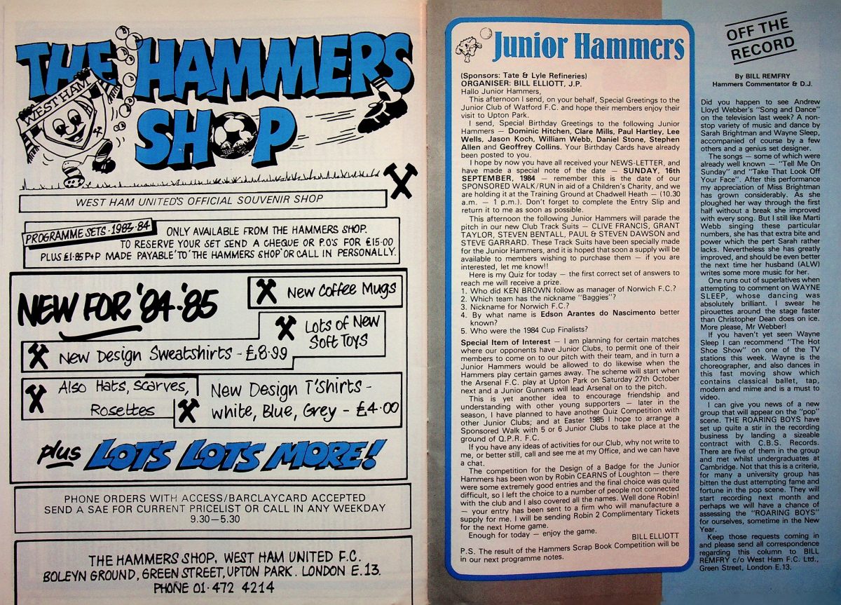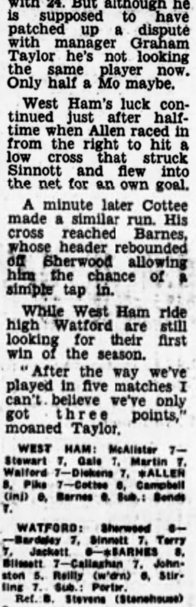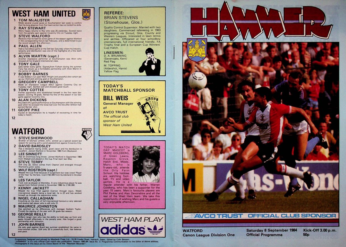 8th September 1984- Division One, West Ham United 2 Watford 0 Programme images courtesy of Matt Hall https://watford.fcdb.info/index.php?page=matches Sunday Mirror, 9 Sep 1984 Sunday People, 9 Sep 1984 Share this: Share on X (Opens in new window) X Share on Facebook (Opens in new window) Facebook
