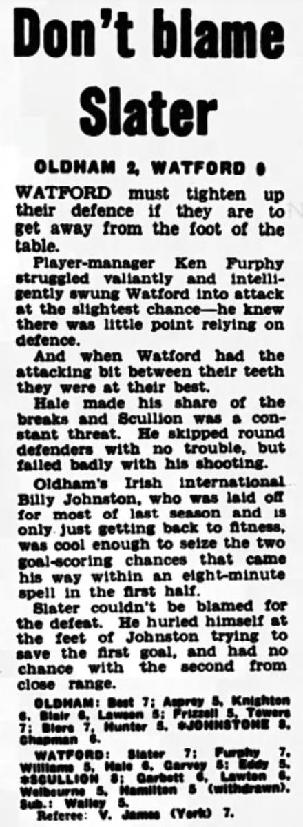 9th September 1967- Division Three, Oldham Athletic 2 Watford 0 http://watford.fcdb.info/index.php?page=matches Sunday Mirror, 10 Sep 1967 Watford Observer match report https://www.soccerbase.com/matches/results.sd?date=1967-09-09 https://www.11v11.com/league-tables/league-division-three/09-september-1967/ Share this: Share on X (Opens in new window) X Share on Facebook (Opens in new window) Facebook