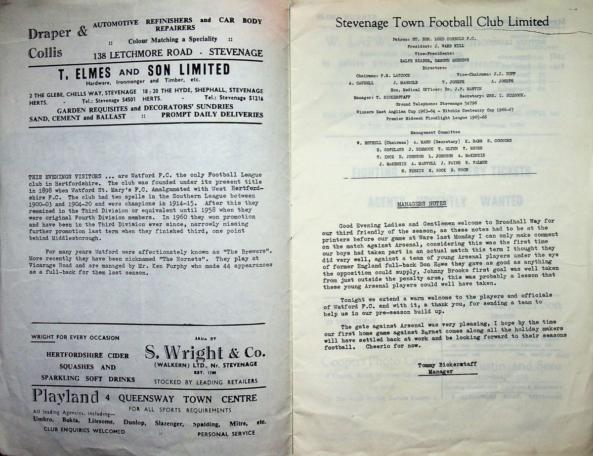 14th August 1967- Friendly, Stevenage Town 2 Watford 1 Watford Observer match report and team line-ups Share this: Share on X (Opens in new window) X Share on Facebook (Opens in new window) Facebook