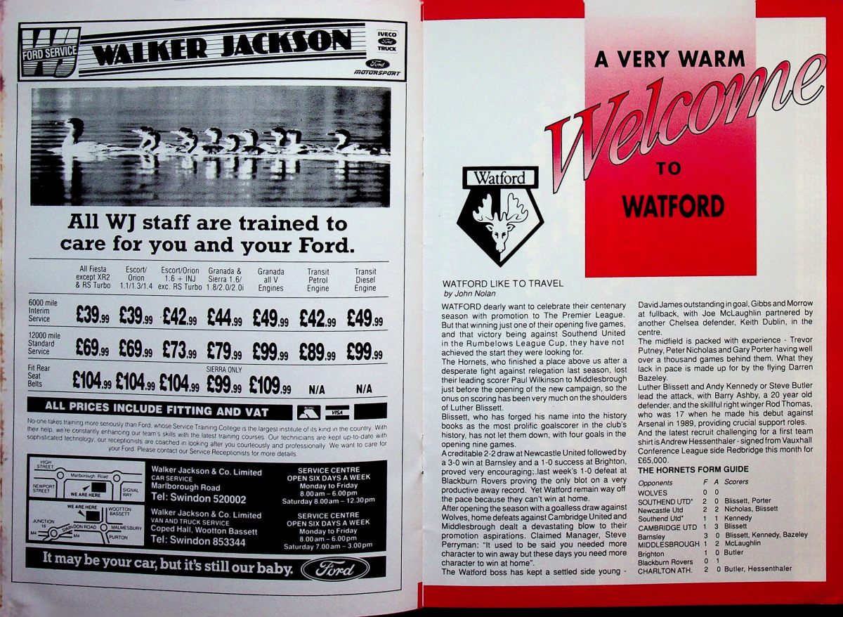 3rd October 1992- New Division One, Swindon Town 3 Watford 1 Leave a Reply http://watford.fcdb.info?id=3995 Share this: Share on X (Opens in new window) X Share on Facebook (Opens in new window) Facebook