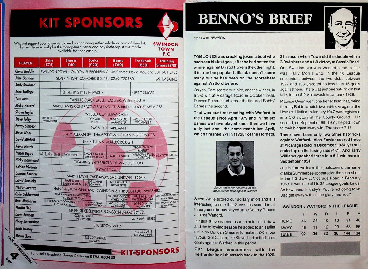 28th September 1991- Division Two, Swindon Town 3 Watford 1 https://watford.fcdb.info/index.php?page=matches Sunday Mirror, 29 Sep 1991 Sunday People, 29 Sep 1991 Share this: Share on X (Opens in new window) X Share on Facebook (Opens in new window) Facebook