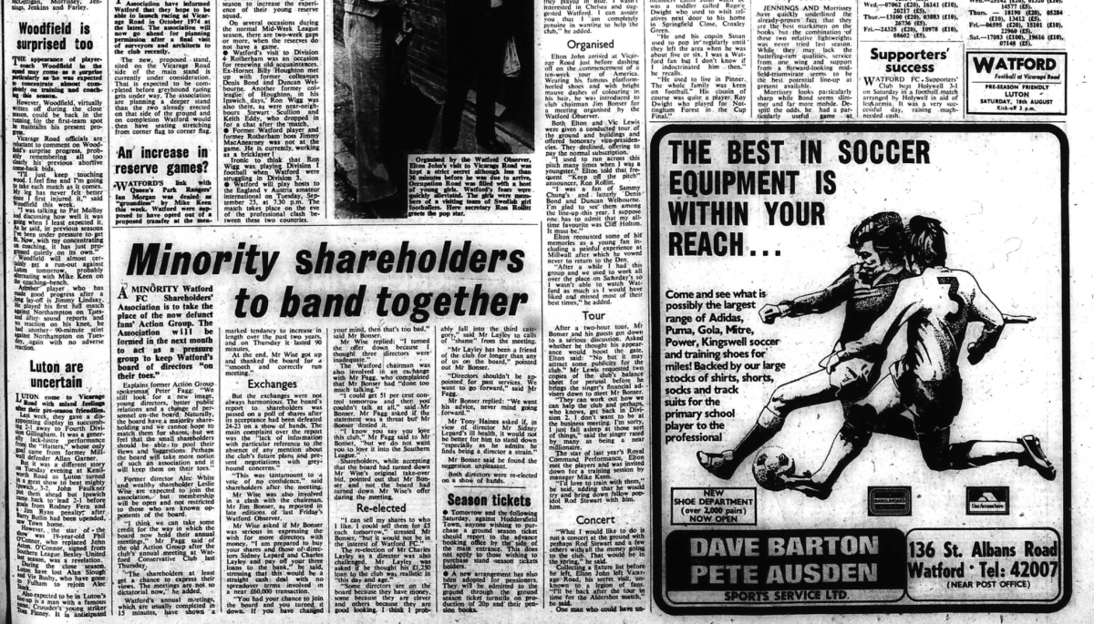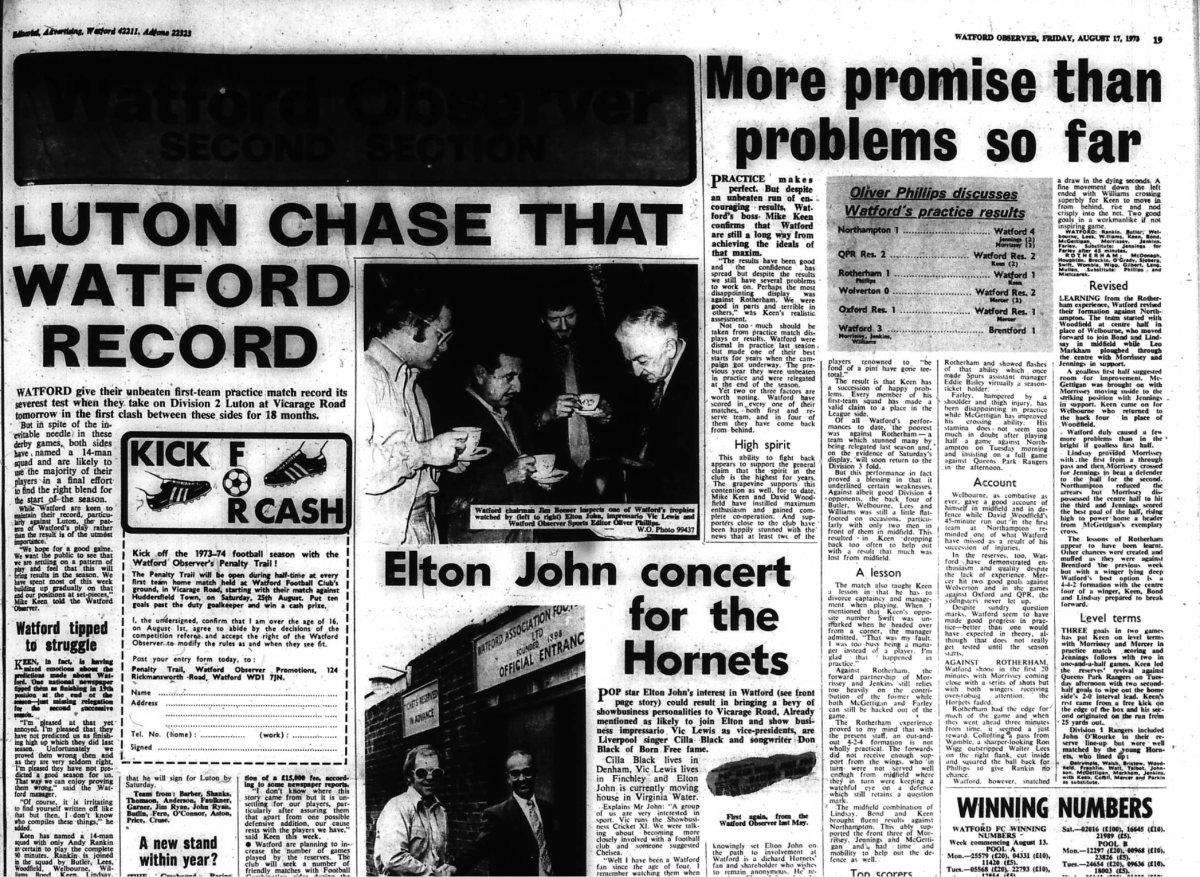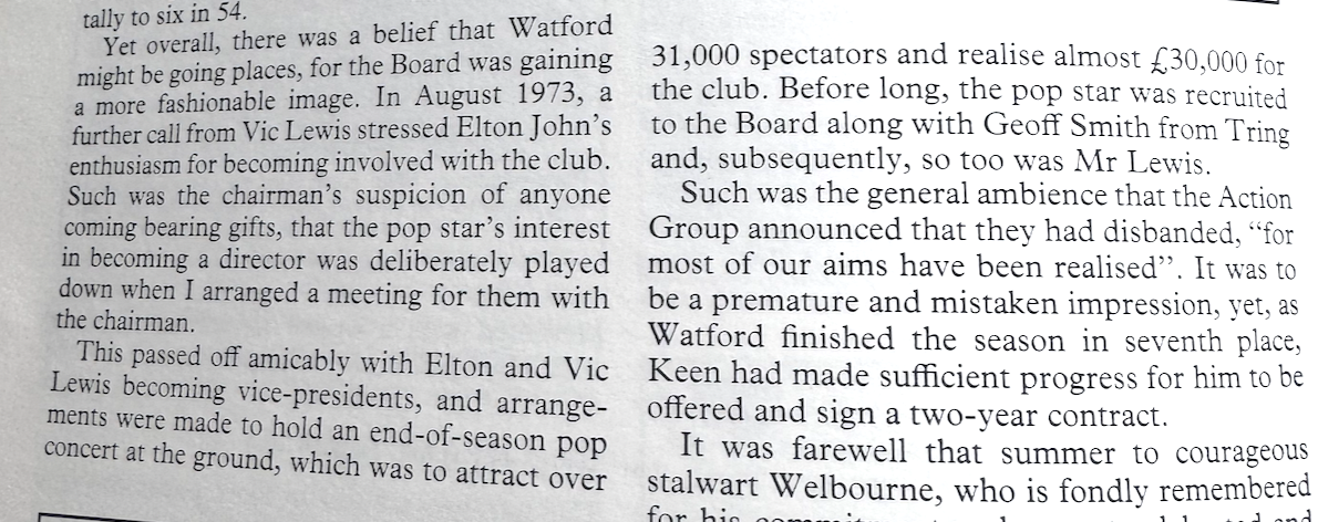 The report says that Elton John is to become vice president, but that appeared to happen on 10th August when Elton and Vic Lewis visited Vicarage Road.