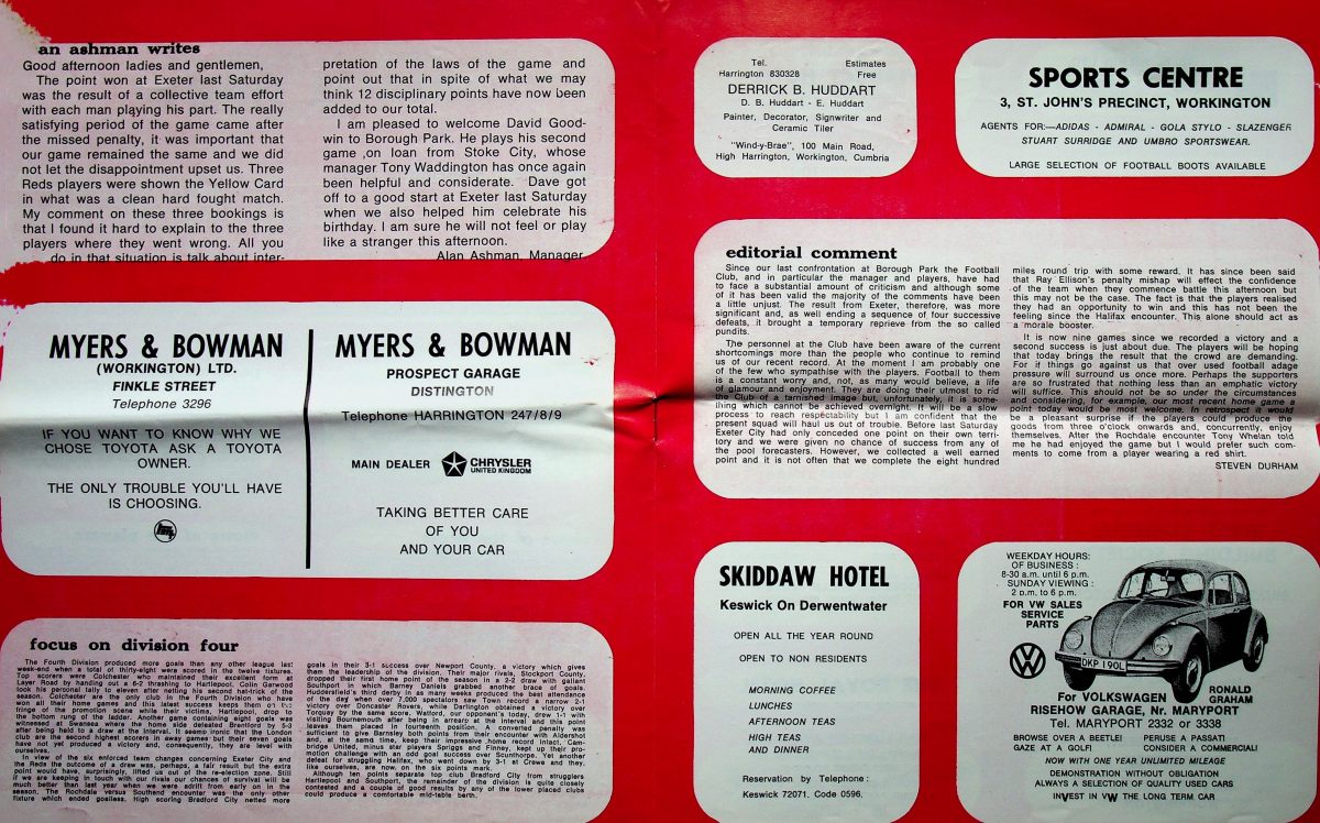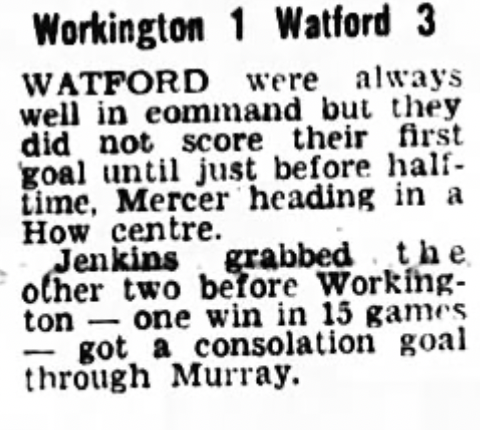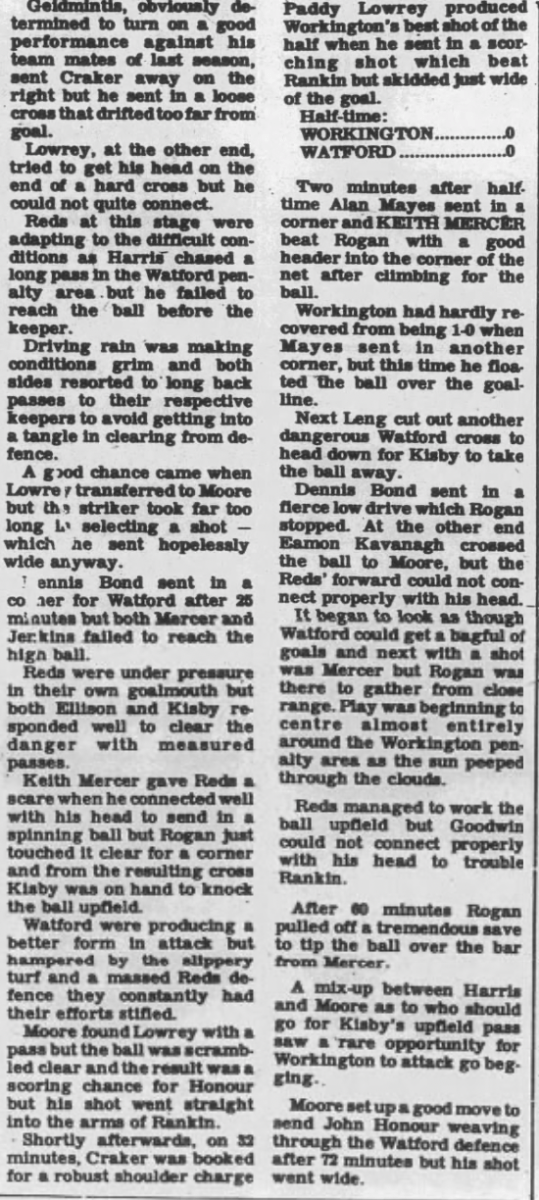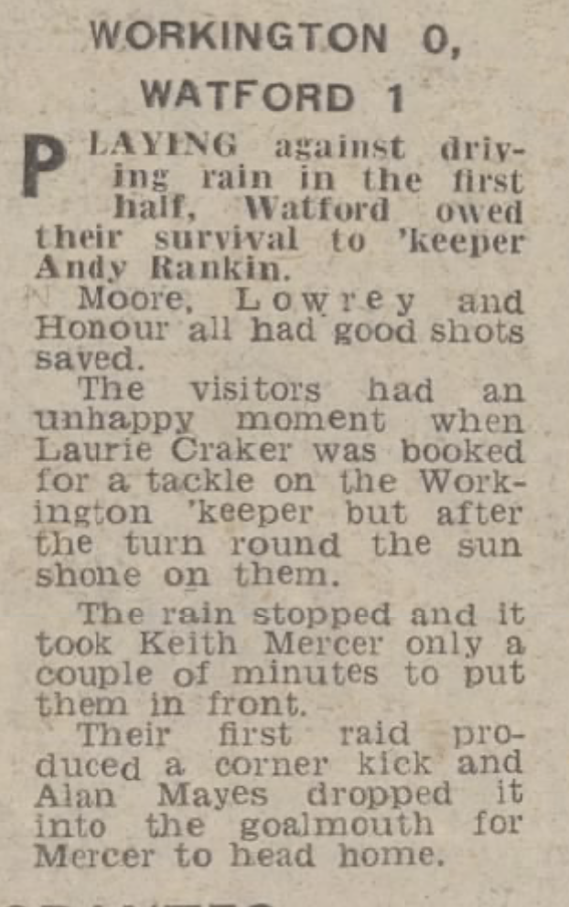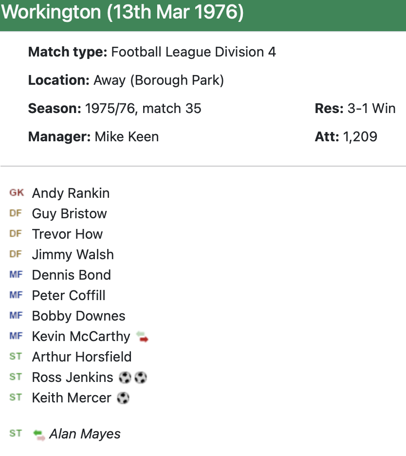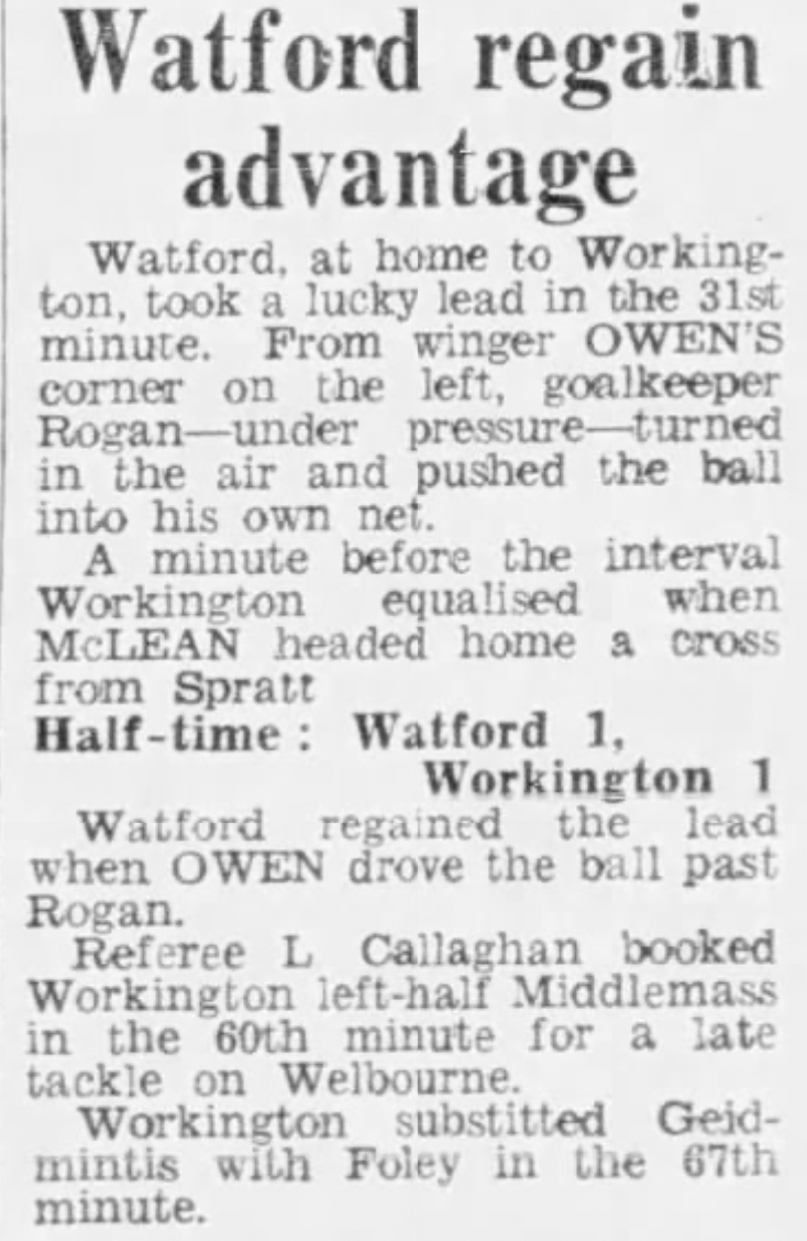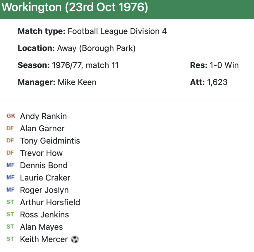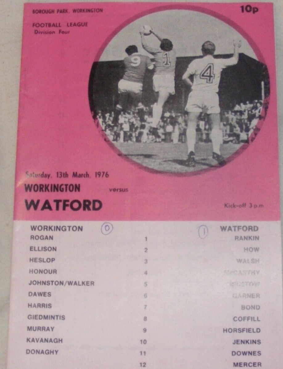 This was the final time we met Workington. They failed to be re-elected to the Football League at the end of the season and were replaced by Wimbledon.