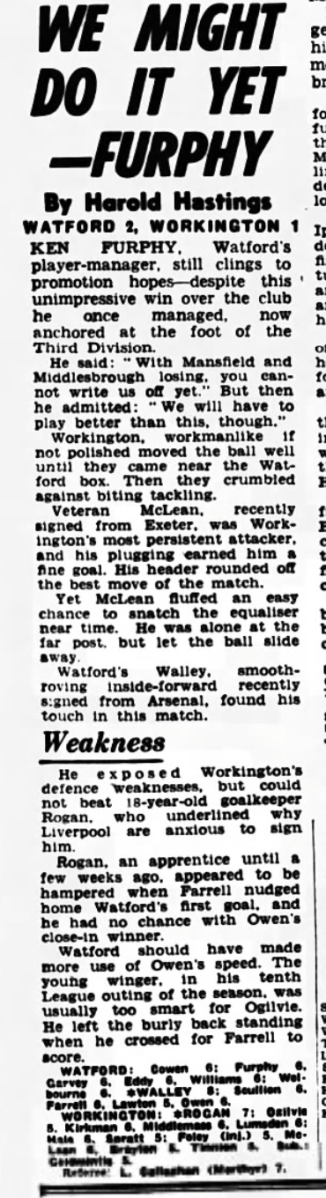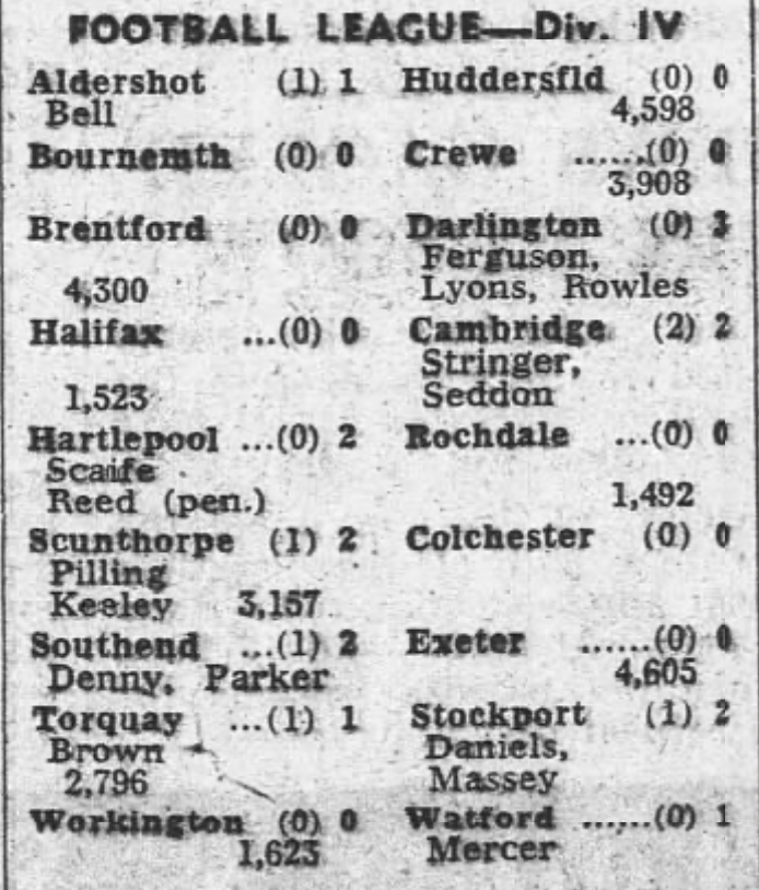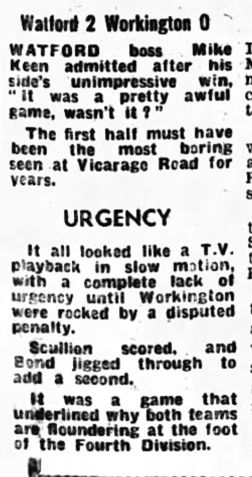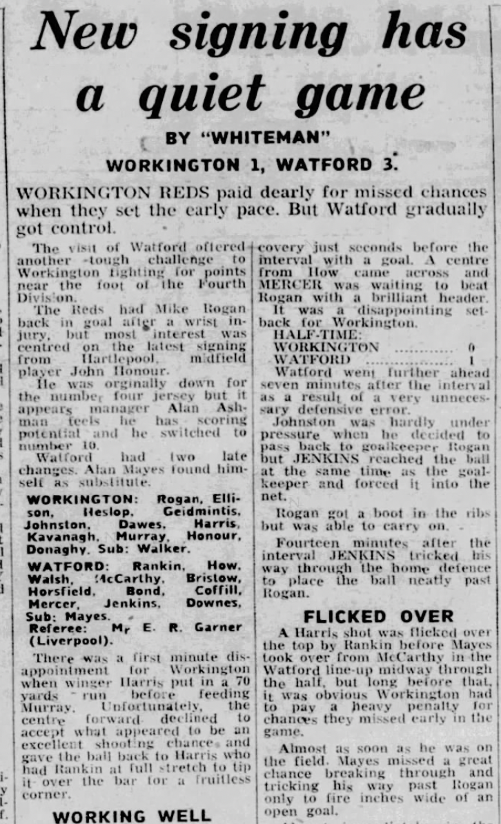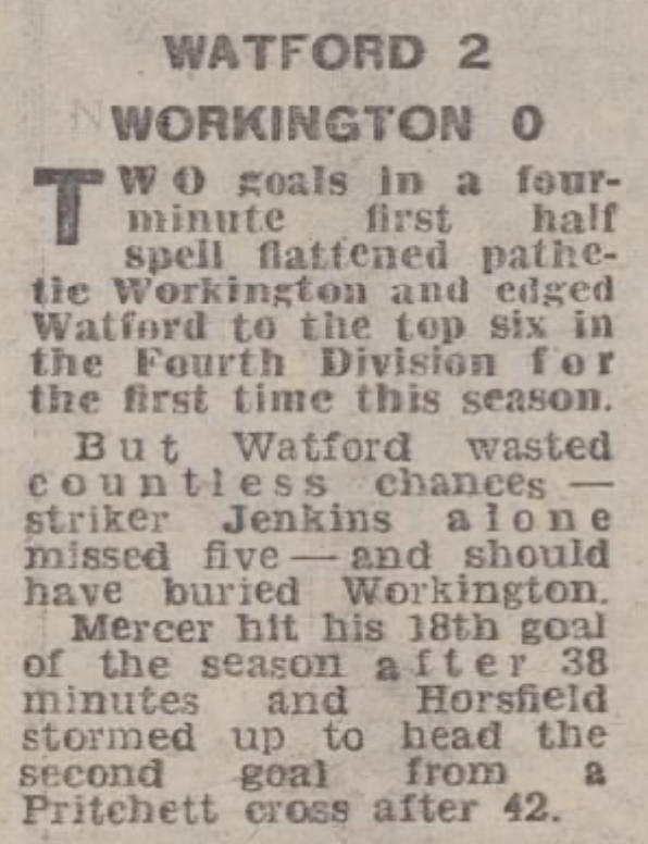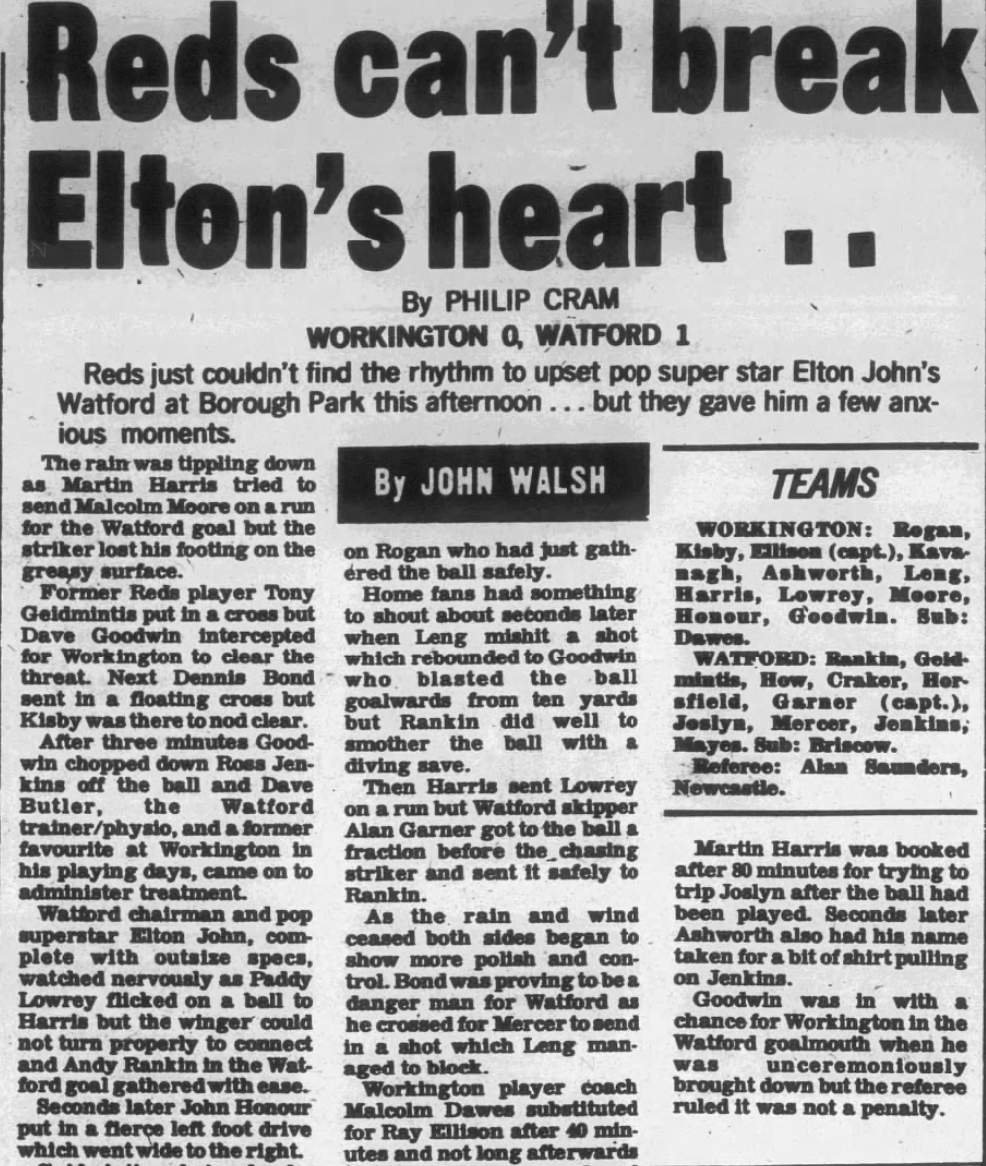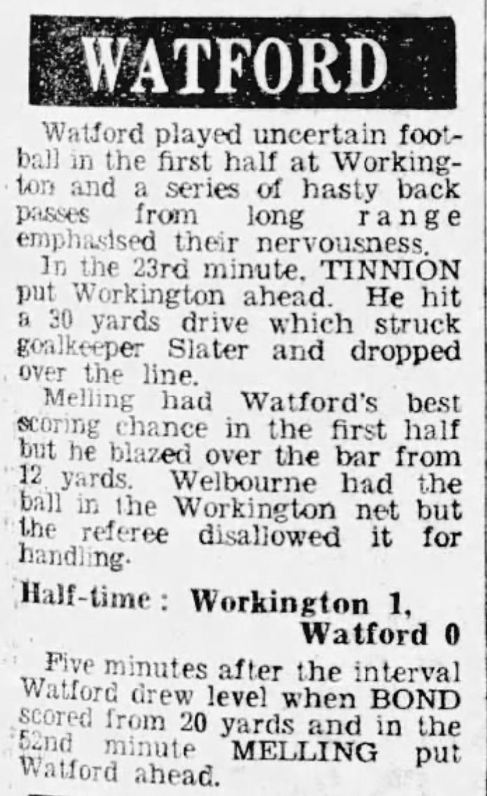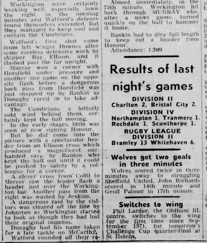 This was the final time we met Workington. They failed to be re-elected to the Football League at the end of the season and were replaced by Wimbledon.