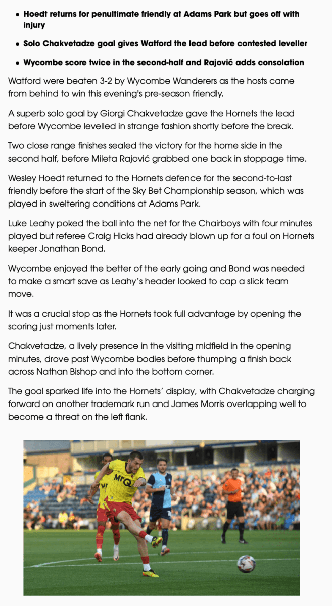 Watford Observer: Watford beaten in five-goal friendly away at Wycombe