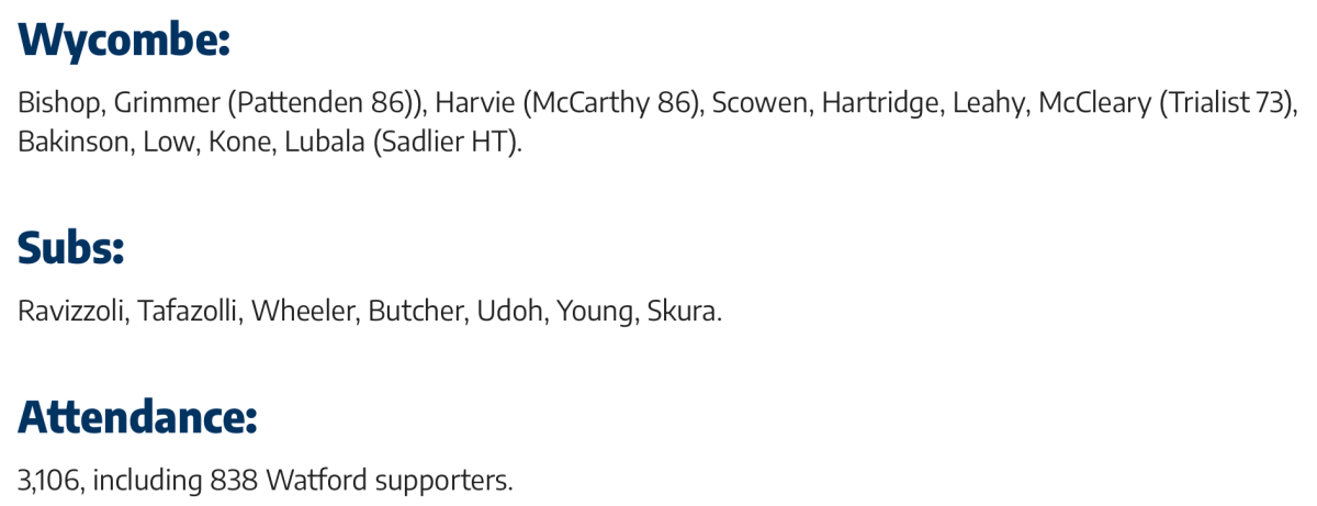 Watford draw away at Wycombe Wanderers